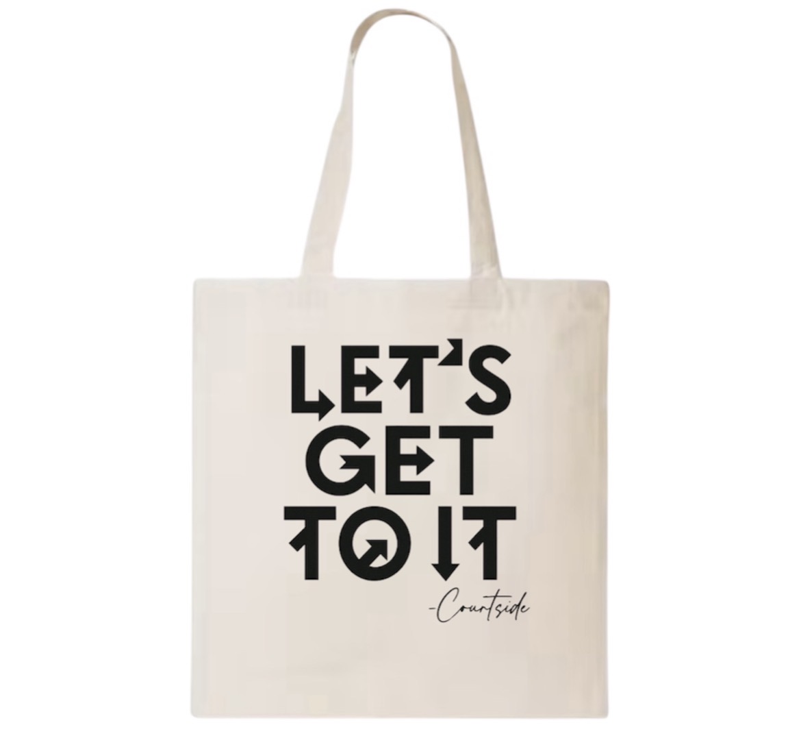 This tote bag features the bold “Let’s Get To It” design, combining everyday function with standout style. Made from durable material with a spacious interior, it’s perfect for carrying daily essentials while repping the brand wherever you go.