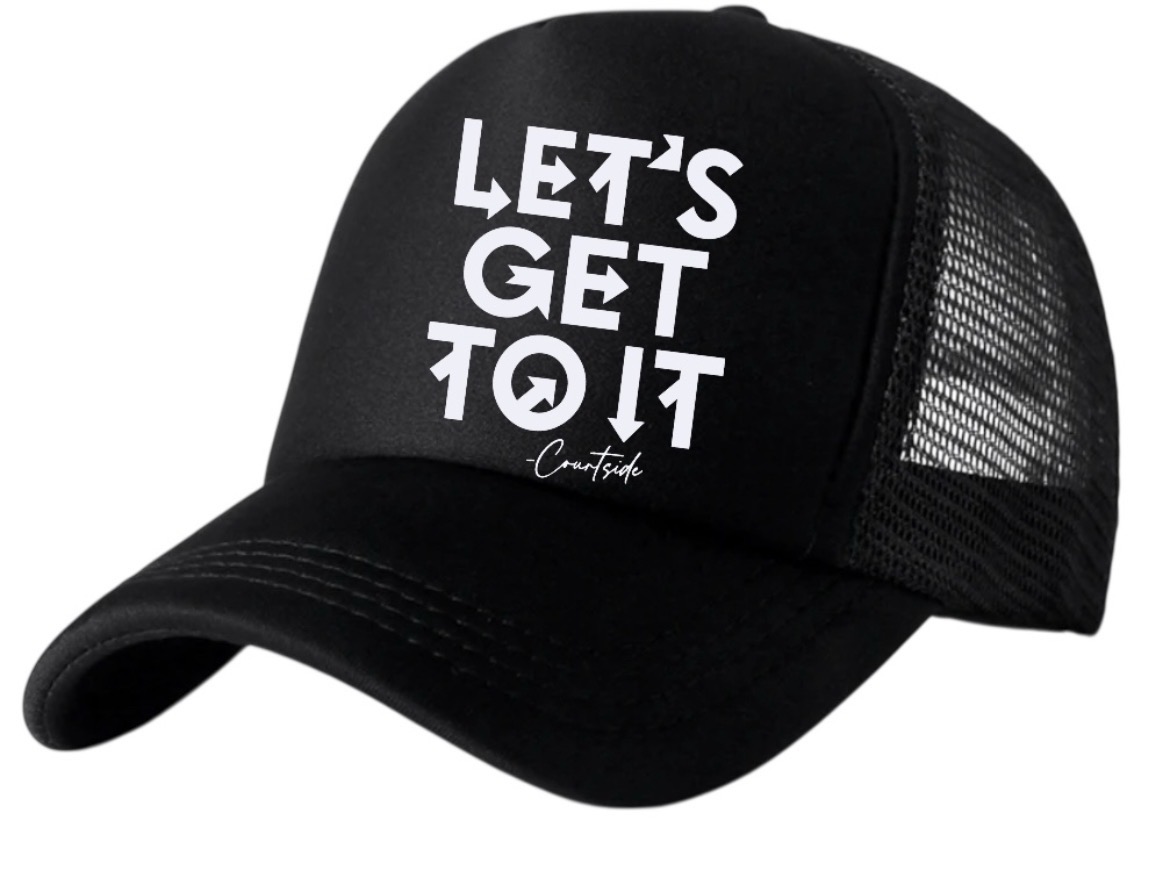 This classic “Let’s Get To It” trucker hat features a structured front panel paired with breathable mesh backing for all-day comfort. Designed with an adjustable snapback closure, it delivers a secure, customizable fit while maintaining a timeless look perfect for everyday wear.