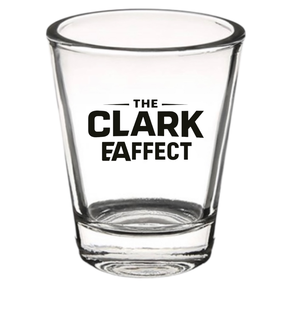 Kick off the moment with our “The Clark EAffect” Shot Glass. Made from high-quality clear glass, this classic shot glass features a bold printed logo that brings energy and attitude to every pour. Whether you’re celebrating with friends, hosting a party, or adding personality to your home bar, this glass is the perfect way to start the night right.